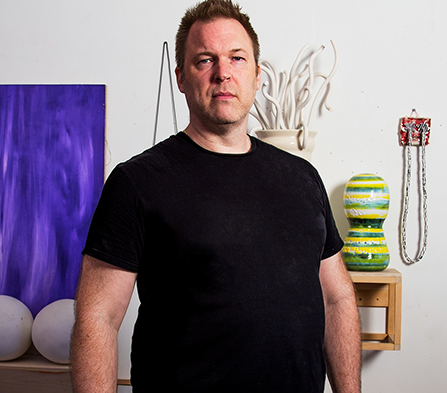 Andrew Cornell Robinson is a Camden, New Jersey-born, New York City-based artist whose work is primarily in ceramic and assemblage. Andrew began working with clay at an Anglo-Japanese pottery where he was taken on as an apprentice in his youth. There he learned the art of throwing, Raku-style firing, and repairing tea bowls with lacquer and gold, a Japanese repair method known as Kintsugi. Elevating brokenness into beauty intrigues him and has evolved into elaborate surface designs that layer printed underglazes, slip and sgraffitto. Andrew studied ceramics at the Glasgow School of Art and the Maryland Institute College of Art, BFA; and he received an MFA in painting from the School of Visual Arts. His work has been featured in Maake, and Sculpture Magazines, Hyperallergic, etc. He has presented his work in over 100 exhibitions including as a participating artist in Debtfair at the Whitney Biennial; the U.K. Crafts Council in London; the French Consulate in NY; and his work was acquired by the Ross Art Museum in Ohio. In 2023 he received a grant from the Queens Arts Council to fund research into printmaking and ceramics culminating in a solo exhibition at the Ben Shahn Arts Center. Andrew teaches and lectures on art, craft and design. He lives and works in NYC.